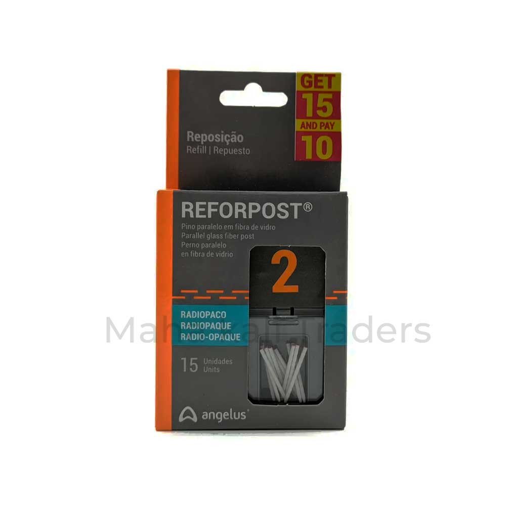 Angelus Reforpost Fibre Glass posts are serrated parallel intraradicular post with conical tip. These fiber glass posts have modulus of elasticity similar to dentin which results in minimum chances of root fracture. Different sizes 1.1, 1.3 and 1.5mm posts are compatible with piezo reamers 3, 4 and 5 sizes respectively.