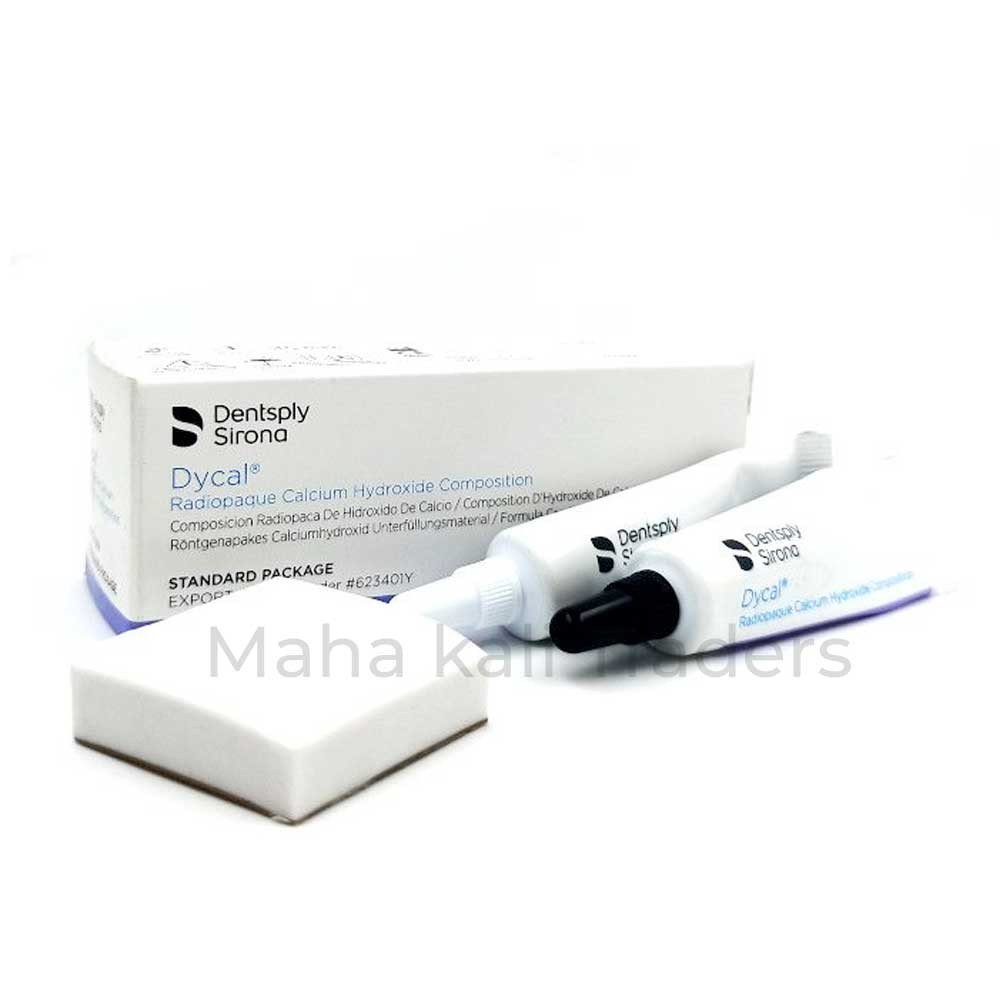 Dycal Radiopaque Calcium Hydroxide Composition is a rigid, self-setting material useful in pulp-capping, and as a protective base/liner under dental filling materials. It will not inhibit the polymerization of acrylic and composite restorations.
