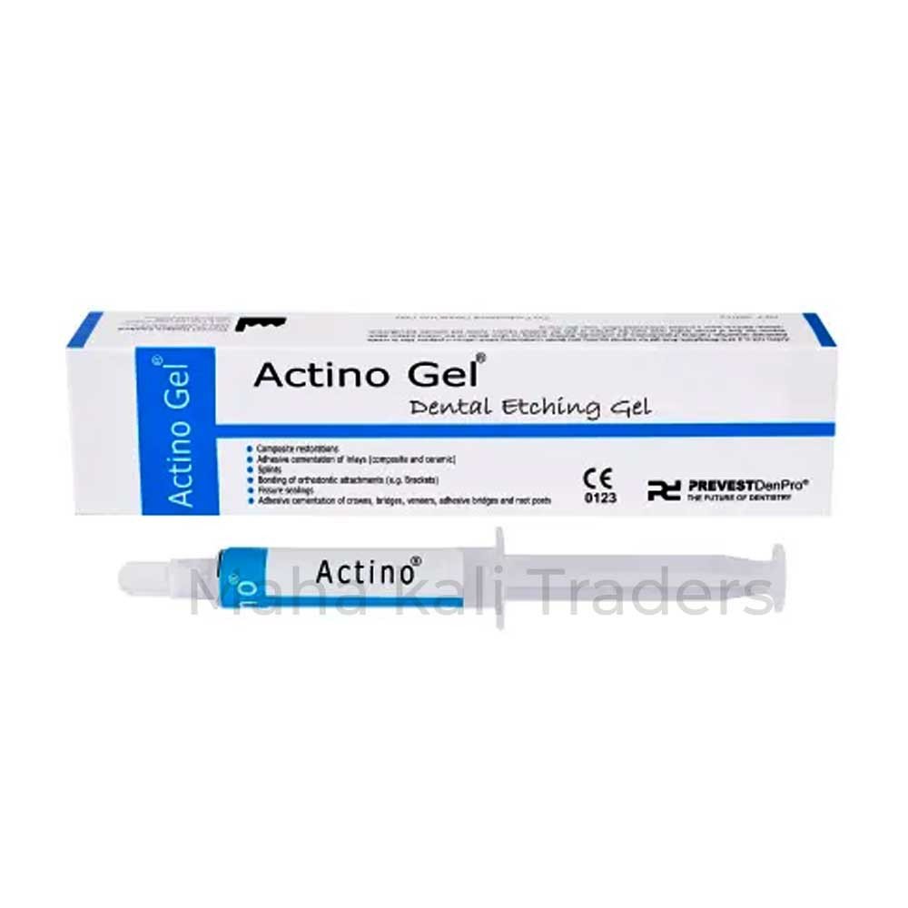 Actino Dental Etching Gel is a Blue tinted viscous gel of 37% Phosphoric acid for etching tooth enamel and dentine or composite surfaces prior to the bonding of any composites, sealants or bonding adhesives. With its blue tinted appearance and viscous gel consistency, it provides optimal control and visibility during the etching process. The gel contains a potent 37% concentration of Phosphoric acid, ensuring efficient and effective enamel and dentine etching. It serves as a crucial preparatory step before bonding composites, sealants, or bonding adhesives to tooth surfaces. The gel precise application allows for selective etching and promotes micro-mechanical retention, enhancing the bond strength between dental materials and the tooth structure. Actino Dental Etching Gel is trusted by dental professionals for its reliability, ease of use, and consistent results, making it an indispensable tool in modern dentistry.
