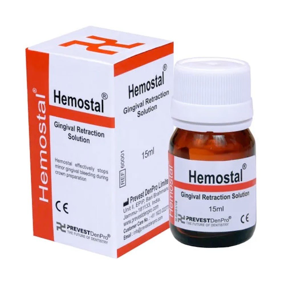 Hemostal is a 25% buffered aluminium chloride solution to stop/control gingival bleeding during restorative procedures, placement of metal bands, cervical matrixes, and crown preparations.