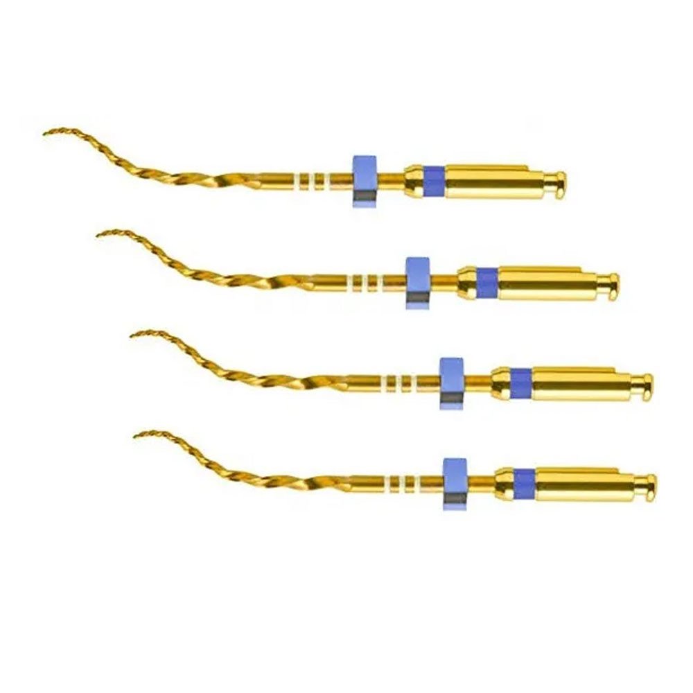 The files are made of a gold alloy material, which contributes to their strength and durability. Additionally, the gold color allows for easy identification and differentiation of the appropriate file size for each endodontic procedure, thanks to the color-coded system. These files are compatible with most rotary handpieces, offering versatility in their usage. Depending on the specific endodontic procedure, the speed of the files can be adjusted accordingly.