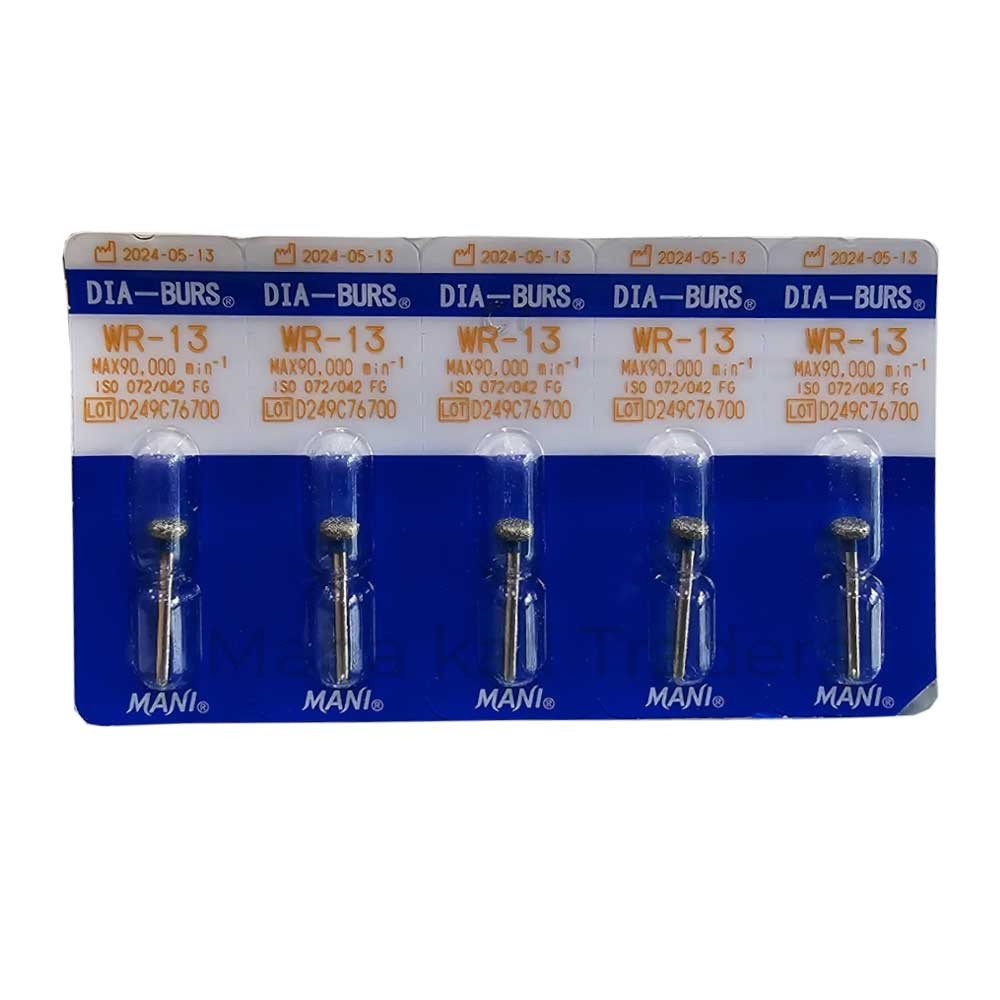 Mani Diamond Burs are specialized dental instruments featuring a stainless steel working part coated with fine diamond crystals. These rotary grinding instruments are specifically designed for precision work on hard tissues, including teeth and bones, making them indispensable tools in the field of dentistry.